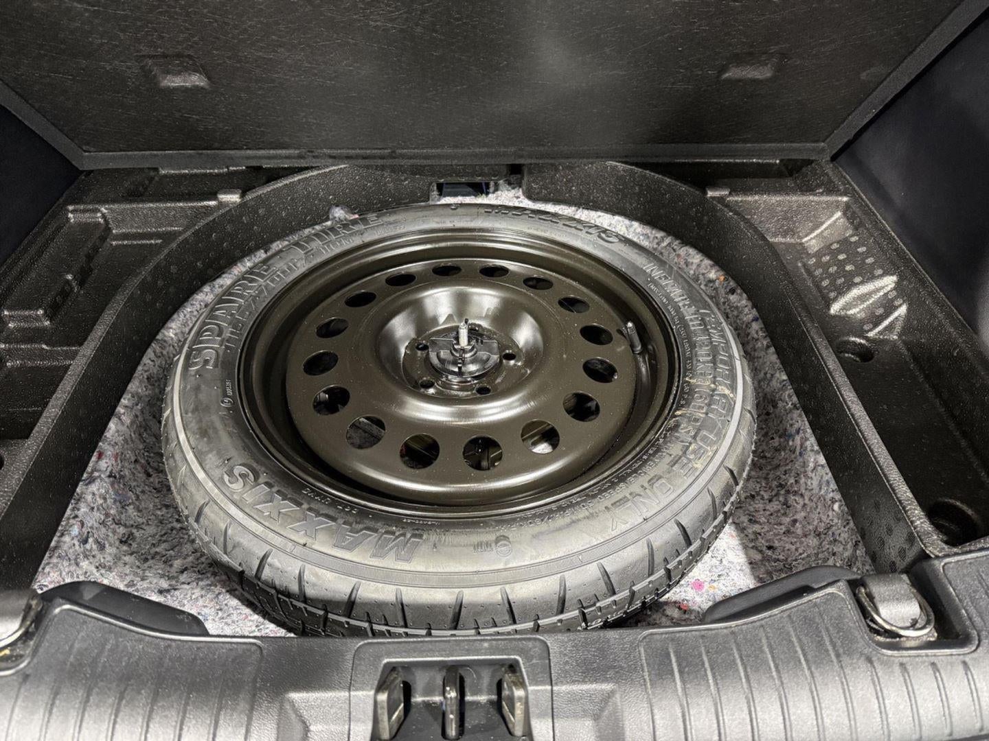 - Includes steel mini spare tire, wheel nut wrench, and jack.